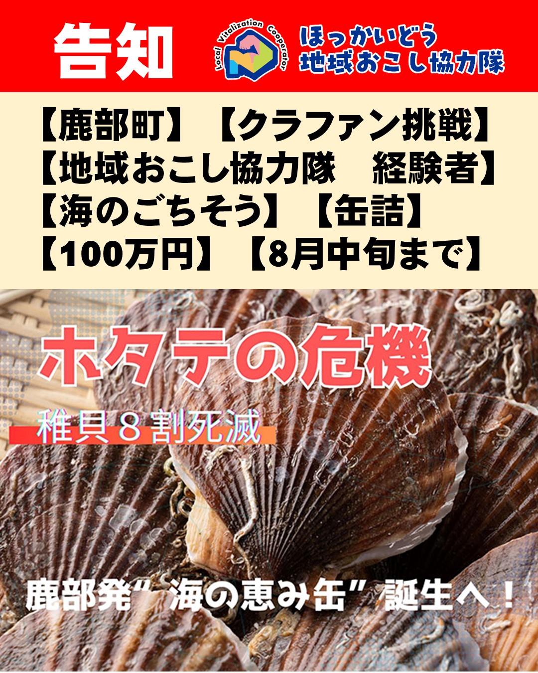 鹿部町地域おこし協力隊経験者、蛭川有裕さんからのお知らせです。
