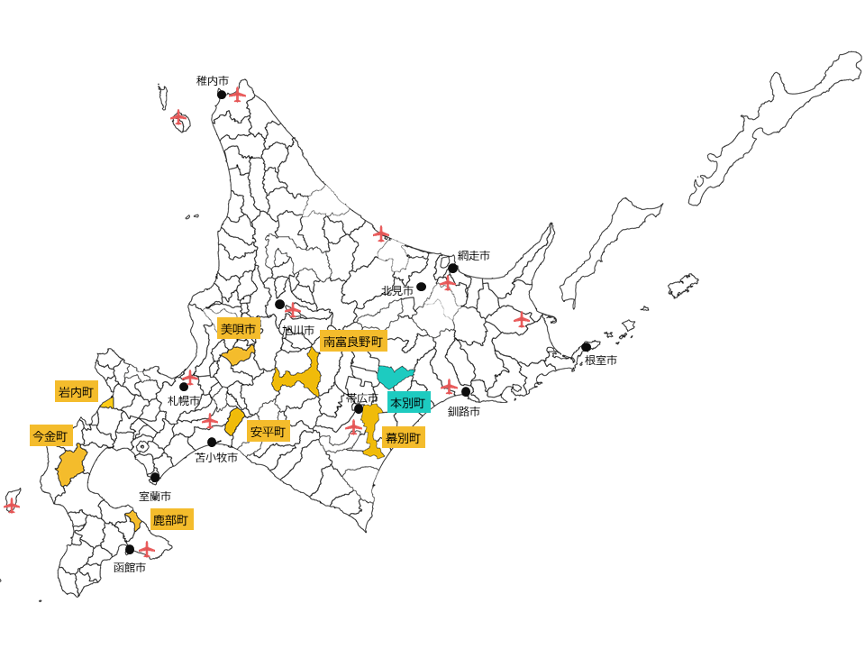 左上:森町 小川さん(左)・ 歌住さん(中央)・ 春澤さん(右)右上:美幌町 一戸さん(左)・ 宮﨑さん(中央)・ 森田さん(右)左下:和寒町 小野さん(左)・ 田中さん(右)右下:栗山町 北山さん